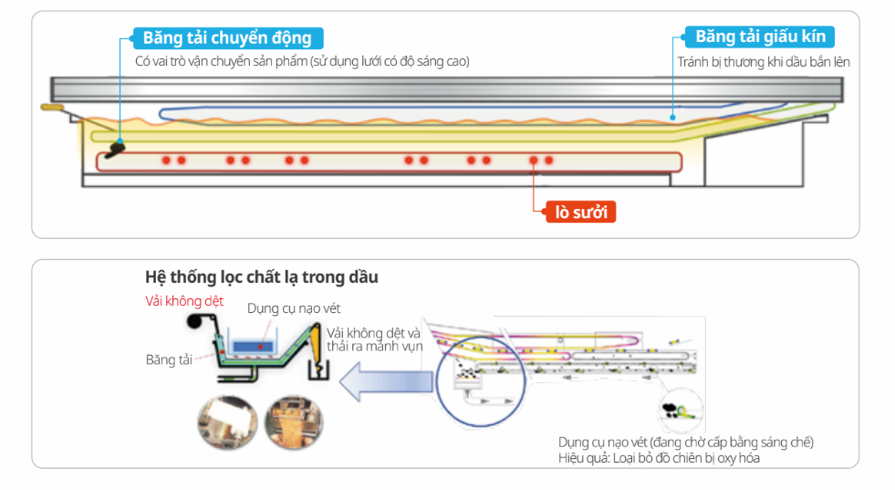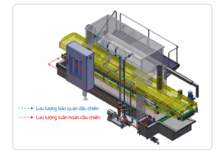- Làm nóng dầu bằng hệ thống gia nhiệt điện.