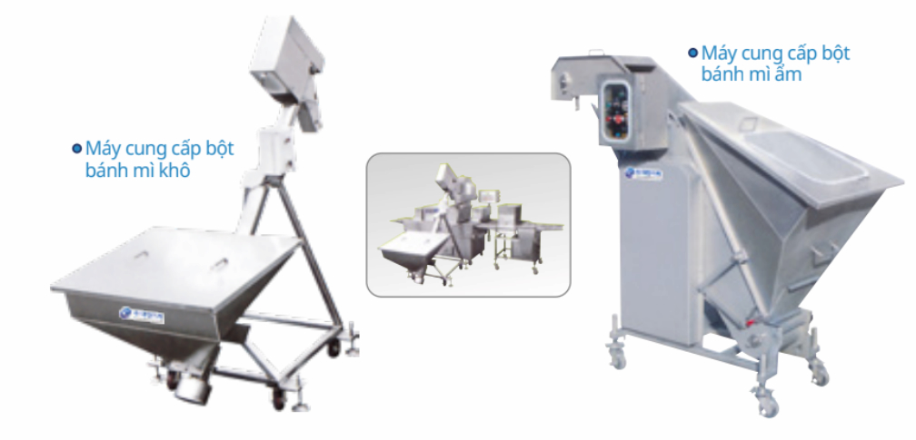 Thiết bị bổ sung lượng bột bánh mì bị tiêu hao trong quá trình vận hành của máy phủ bột, đảm bảo lớp phủ luôn ổn định và đồng đều.