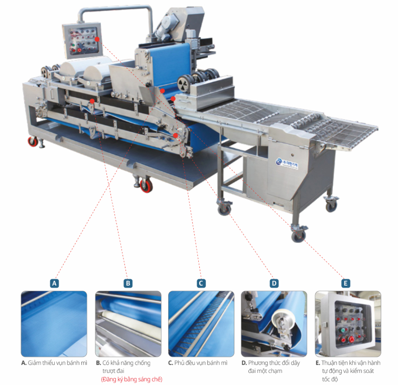 Hạn chế vụn bánh mì vỡ nhờ phương thức vận chuyển bằng dây đai.