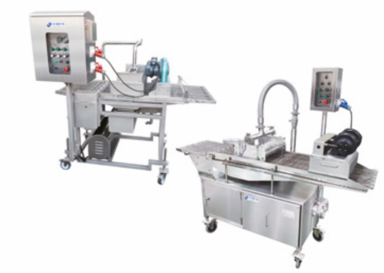 Phun dung dịch bột dạng “vòi hoa sen” phủ đều lên sản phẩm khi đi qua băng tải.