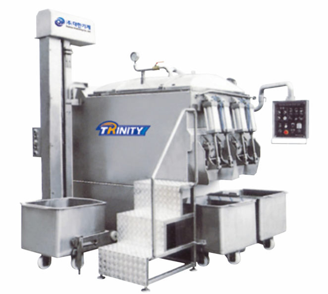 Vacuum mixer produces bubble-free and evenly mixed processed meats with perfect elasticity. It gives convenience to operator using lift.