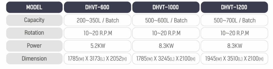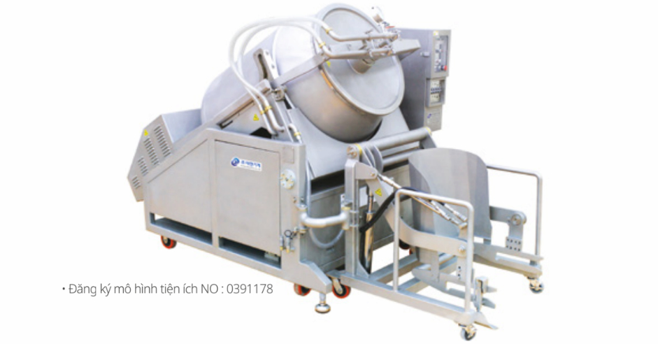 The Vacuum tumbler tenderize meat and make it absorb salt or marinades. It provides the prevention of temperature rise , the quality of taste. The worker can be easily used because of time control function. A tank can rotate forward and reverse and opens and pour it. It has filter to prevent particles and for easily cleaning.