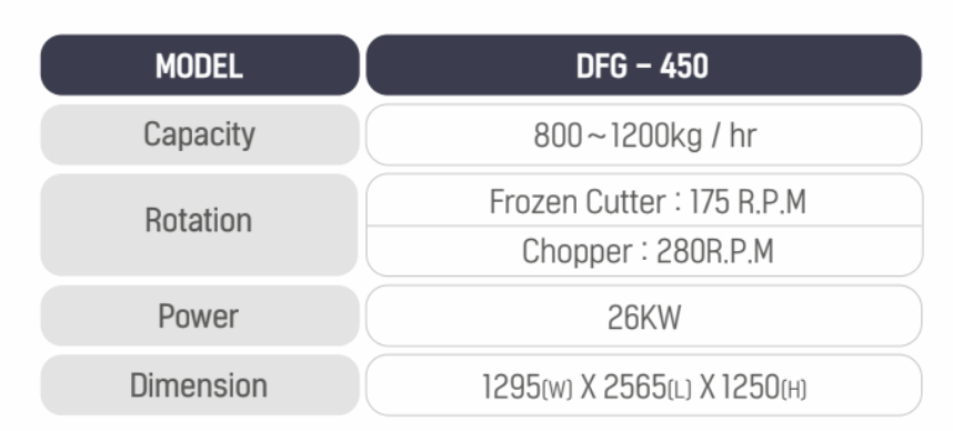 Dùng để cắt nguyên liệu đông lạnh dạng khối thành các miếng nhỏ, phục vụ cho quá trình xay nhuyễn.