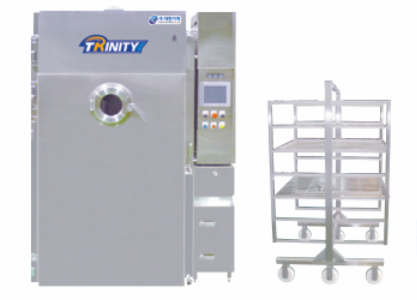 A facility to sterilize and cook by smoking with direct and indirect heat from electricity or steam.