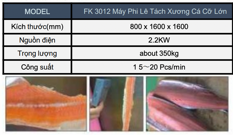 Hiệu suất thu hồi vượt trội: Tỷ lệ thu hồi thịt cá đạt 76% – 80% sau khi cắt, cho sản phẩm hoàn chỉnh, đẹp mắt.