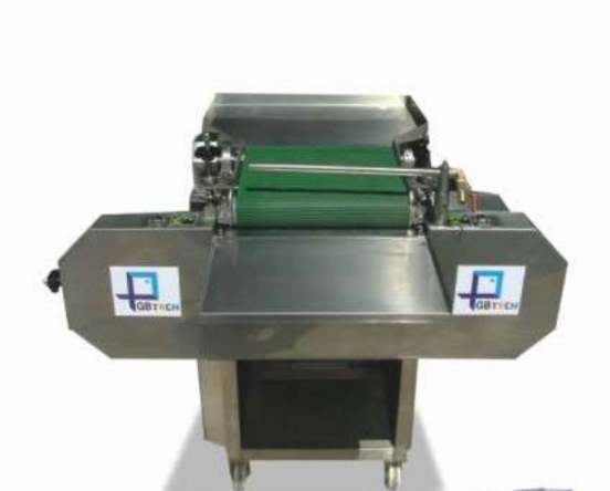 Chỉ cần đặt sản phẩm lên băng chuyền, máy sẽ tự động cắt lát ngang với độ dày đồng đều.