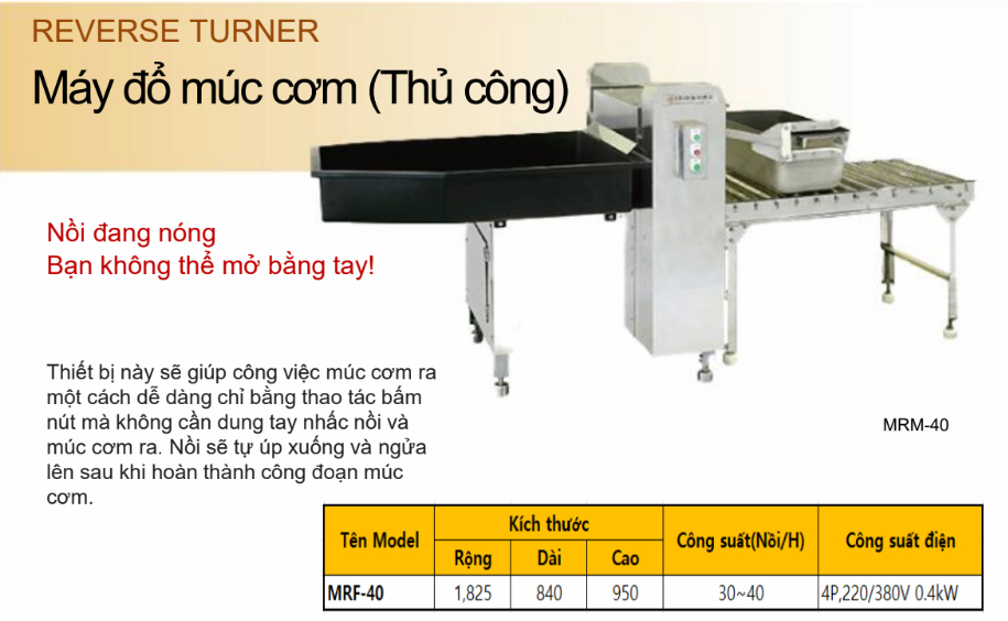 - Thiết bị này giúp việc lấy cơm trở nên đơn giản chỉ với thao tác bấm nút, thay thế hoàn toàn việc nhấc nồi và múc cơm thủ công.