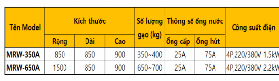 Hệ thống tiêu chuẩn: 350 ~ 400kg/giờ