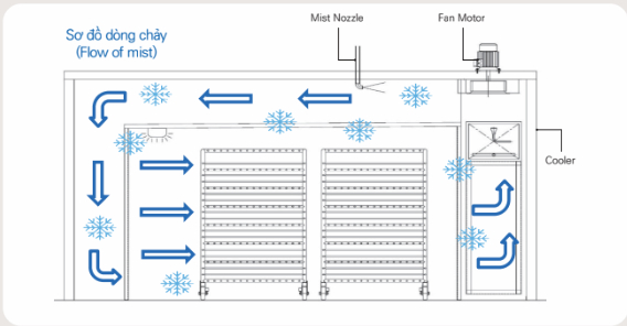 Nhờ mô tơ được lắp bên ngoài buồng nên hạn chế được các vấn đề hỏng hóc do rỉ sét. Đồng thời đảm bảo vệ sinh trong buồng hơi phun sương.
