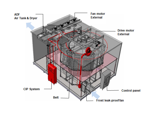 • Hygienic by installing the drum drive unit outside.