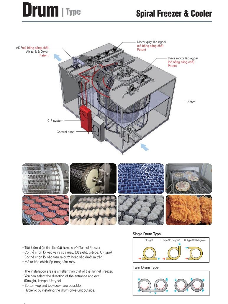 Hầm cấp đông xoắn ốc loại thùng giữa [Drum type Spiral freezer & Cooler]