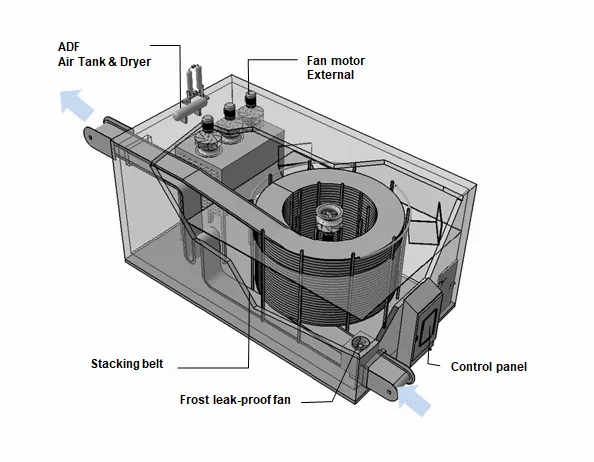 Với thiết kế xoắn ốc tự xếp chồng hiện đại, hầm cấp đông Yong-sung đảm bảo công suất làm lạnh tối ưu. Hệ thống này phù hợp với các nhà máy chế biến thực phẩm quy mô lớn, giúp tối đa hóa năng suất mà vẫn duy trì chất lượng sản phẩm ở mức cao nhất. Đây là lựa chọn lý tưởng cho các doanh nghiệp cần cấp đông nhanh chóng và hiệu quả.