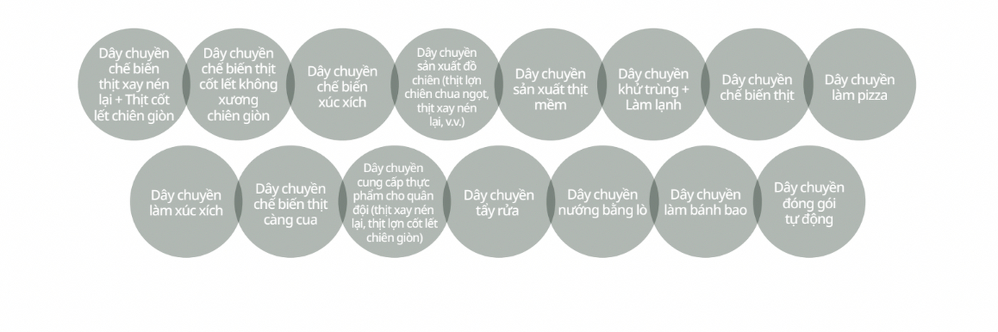 Thiết bị chuyên dụng Deahan Machinery cung cấp giải pháp toàn diện cho ngành chế biến thực phẩm với nhiều dây chuyền chuyên dụng như: chế biến thịt, xúc xích, càng cua; dây chuyền sản xuất đồ chiên, cùng các hệ thống khử trùng, làm lạnh, tẩy rửa và đóng gói tự động. Tất cả được thiết kế hiện đại, đồng bộ, đảm bảo tiêu chuẩn quốc tế và mang đến hiệu quả sản xuất tối ưu cho doanh nghiệp thực phẩm.