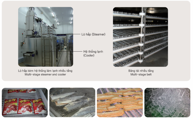+ Hầm cấp đông băng tải thép (Steel Belt Tunnel Freezer & Cooler).